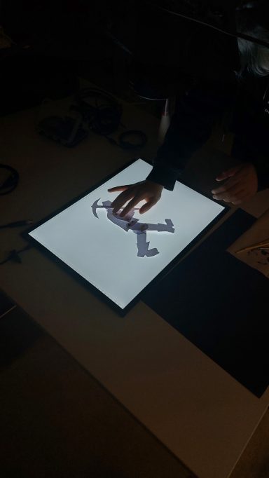 Hierbei wurden drei Wände mit collageartigen Animationen bespielt, welche den Verlauf von vergangener, gegenwärtiger und zukünftiger Arbeitswelt darstellen.